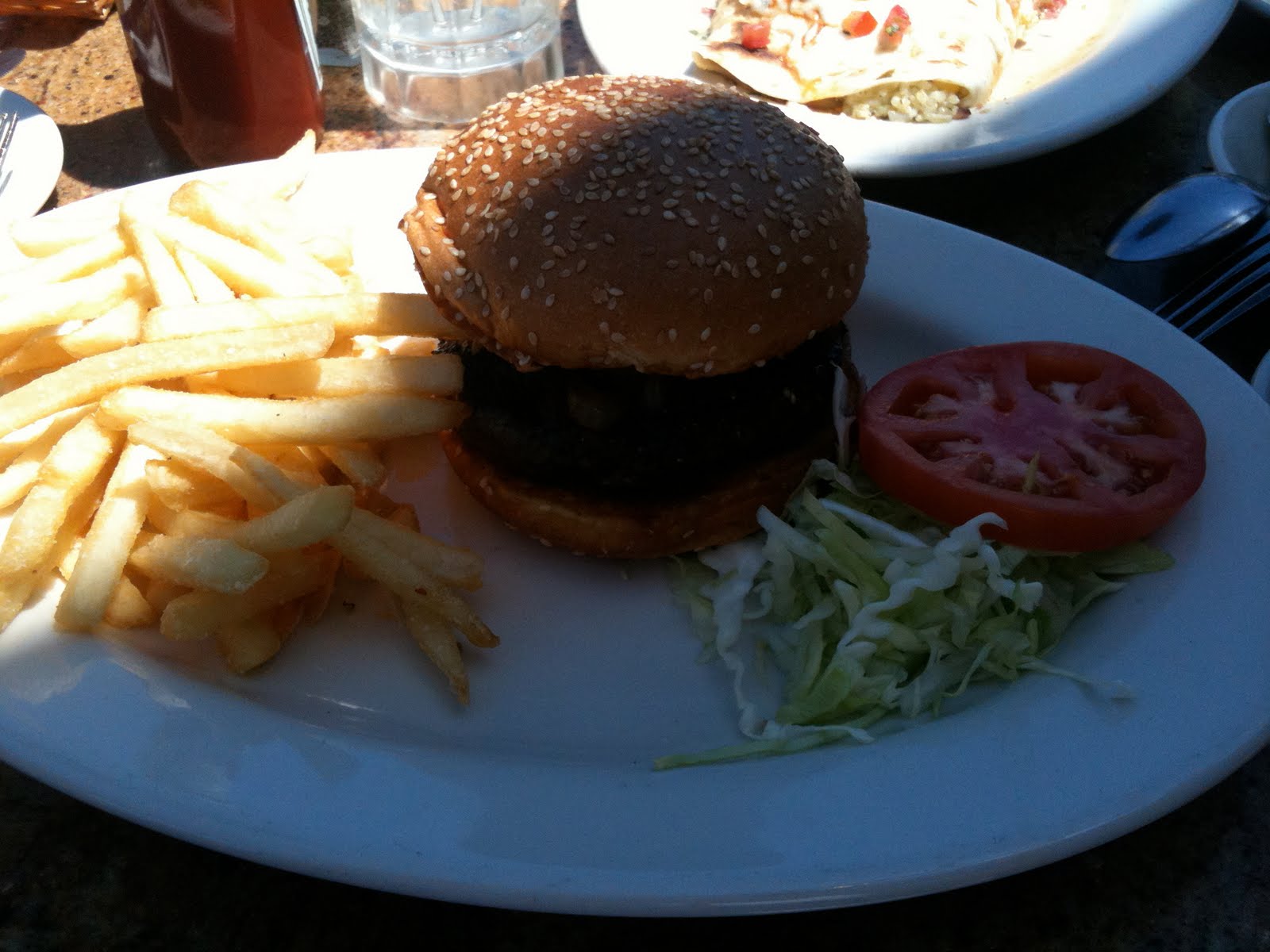 Lunch with Chinky at Cheesecake Factory. I had a kobe burger and she had this enormous burrito.
